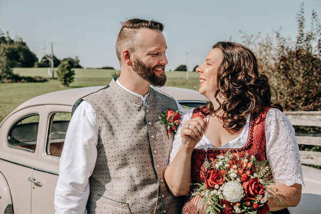 Die traditionelle Hochzeit von Claudia und Georg im malerischen Dachauer Hinterland fand in einem intimen Kreis von Freunden und Familie statt. Ein besonderes Highlight war der Buckelwagen, der als charmantes Brautauto diente. Diese Hochzeit in traditioneller Tracht versprühte ländliche Idylle und festliche Tradition, was diesen Tag zu einem einzigartigen und authentischen Erlebnis machte.